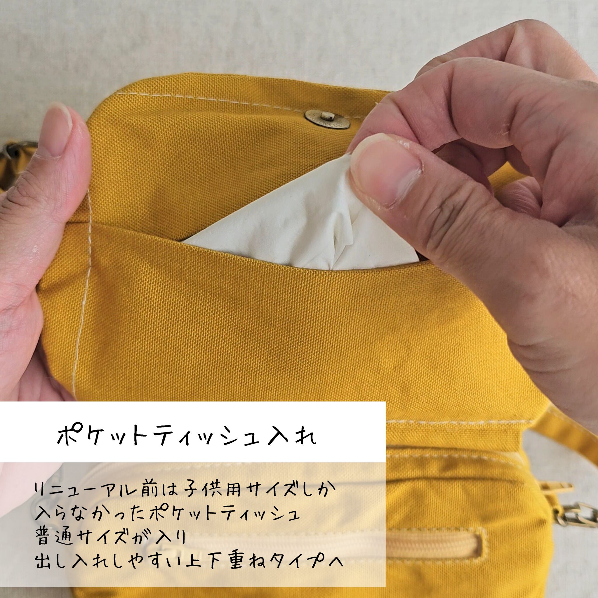 ポケットティッシュも出し入れがしやすいよう改良