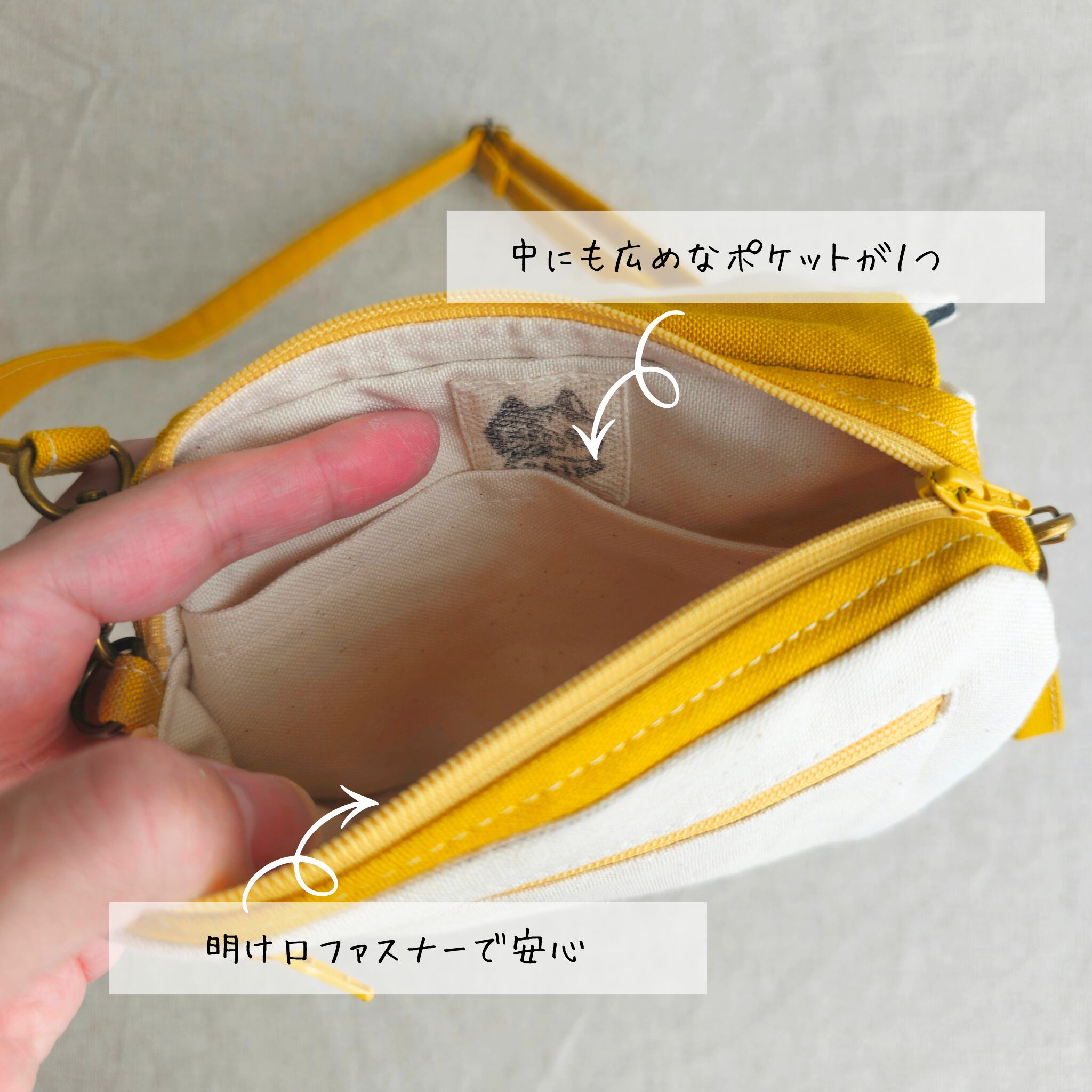 猫バックと同じ帆布の生地に変更したため